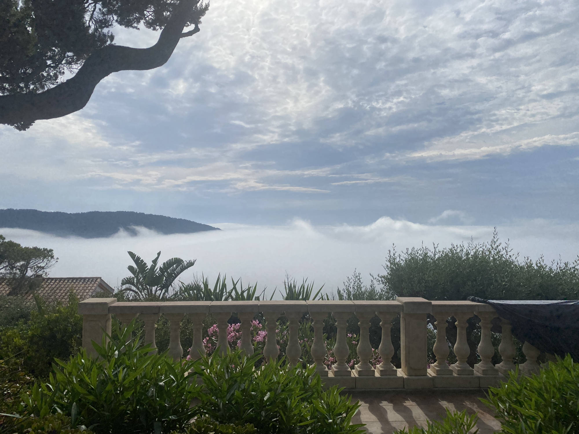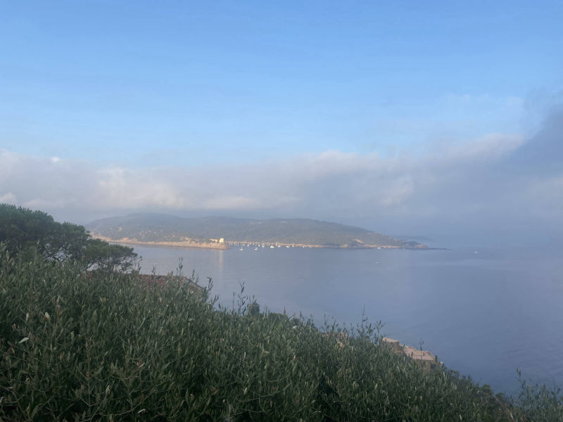 La vue à 180° sur 80 kms de la côte Varoise du Cap Sicié, la rade de Toulon jusqu’à la presqu’ile de St Tropez avec l’Ile de Port Cros, L’Ile de Porquerolles, la Presqu’ile de Gien, le Fort de Brégançon….